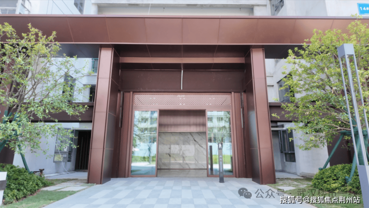 项目在售一期打造了地上、地下双精装入户大堂,并且进行了全方位升级。比如入口处的电动玻璃门上方嵌入镂空图案,增加视觉美感,打破传统门体的厚重感。