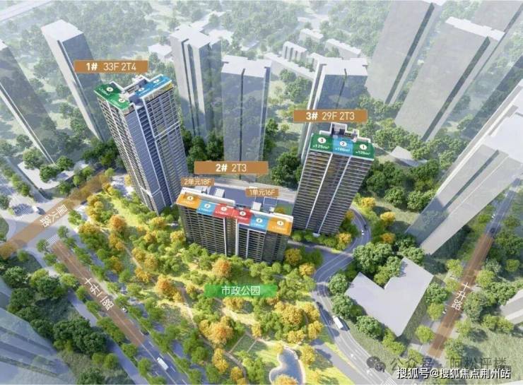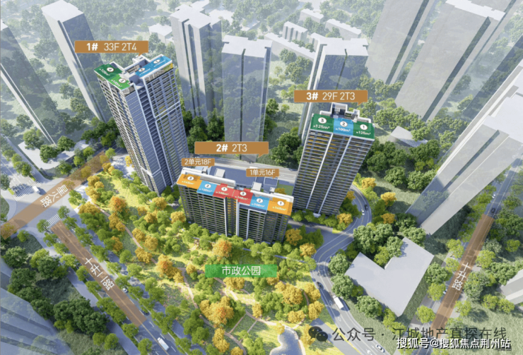 ②居住氛围优质低密,整体容积率约2.99,南部紧邻约1.26万㎡市政公园,规划16-33层住宅,其中含16-18层小高层,采用半围合布局,保障楼间距与视野;