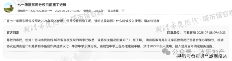 项目周边规划有七一华源中学(东湖分校)距离在1公里以外了,总占地约61.66亩,预计可容纳学生2100人,42个班规模。根据城市版留言七一华源中学(东湖分校)预计2027年投入使用,目前报规已通过。