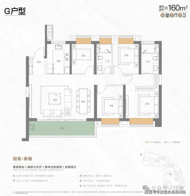 北向餐厅、双次卧、卫生间均带飘窗,可利用率较高;南向主卧套房设计,带独立卫浴、衣帽间、飘窗,兼具功能性及私密性。