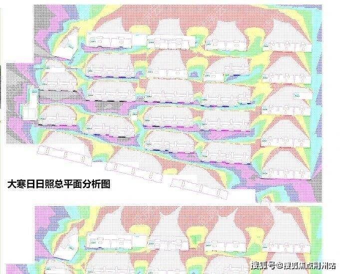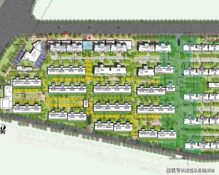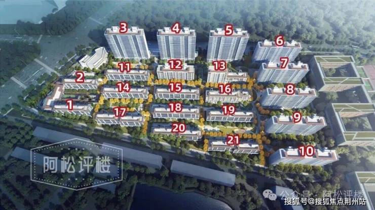 地块呈不规则的梯形,北侧、西侧临主次干道,东侧、南侧规划公共通道,所有楼栋均为正南北朝向,楼间距大概23-34米左右。北侧3栋18层、东侧5栋13层的高层均处于外围,包含2-3个单元,中部、西侧13栋楼6-11层,包含2-4个单元。