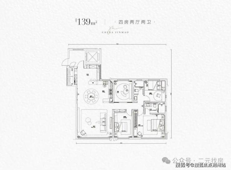 这种四叶草户型,比较符合现在的二孩家庭,父母、自己、两个孩子一人一间,休息互不打扰,每个人都有属于自己的个人空间。