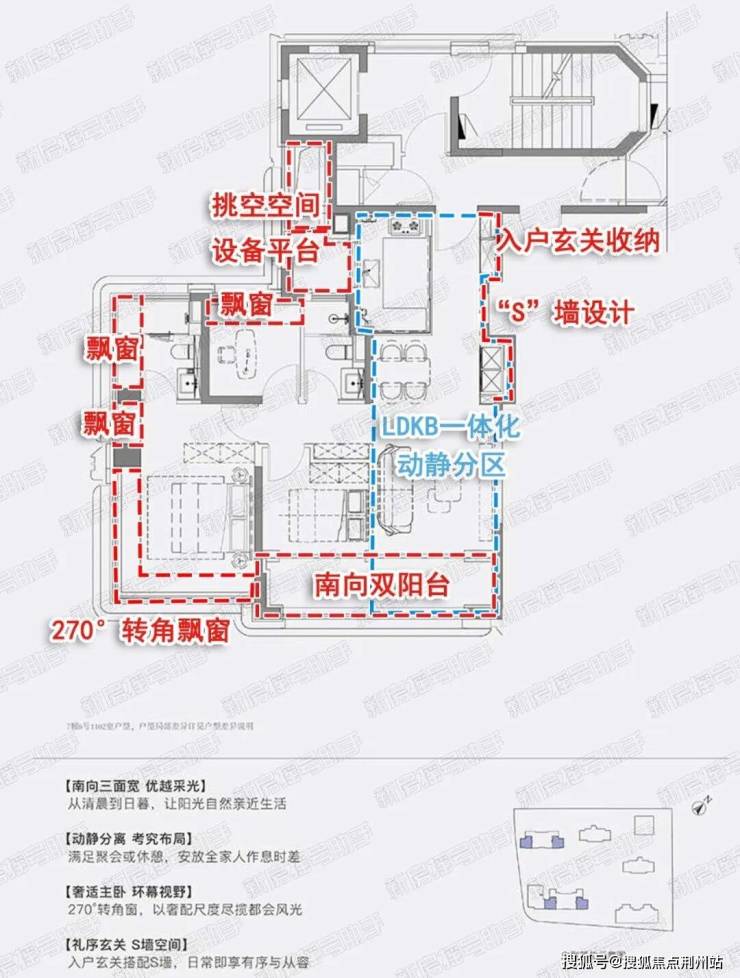 三开间朝南、南向双阳台设计、经典动静分离、超强附赠户型,其中108㎡边套户型可赠送约18㎡!完全可以满足年轻家庭改善居住。