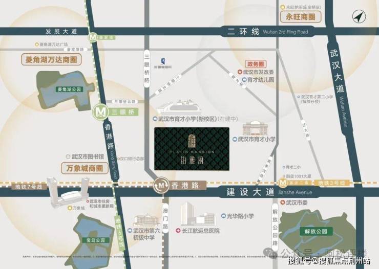 福星惠誉·铂雅府位于江岸区二环内,近香港路和建设大道。