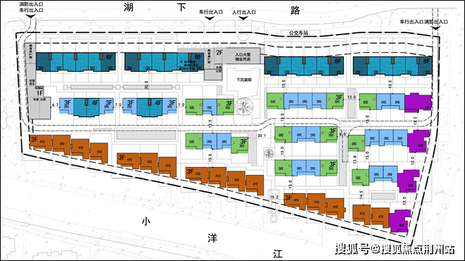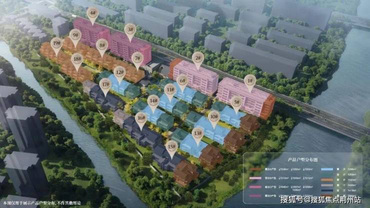 能不能进一步优化?可以!但需要调整产品类型。比如下面这个,8层、7层、4层叠墅+3层别墅的组合。该方案最大化利用了北面面宽,通过抬高上叠高度优化上叠景观视野,从而增加瞰江户数。