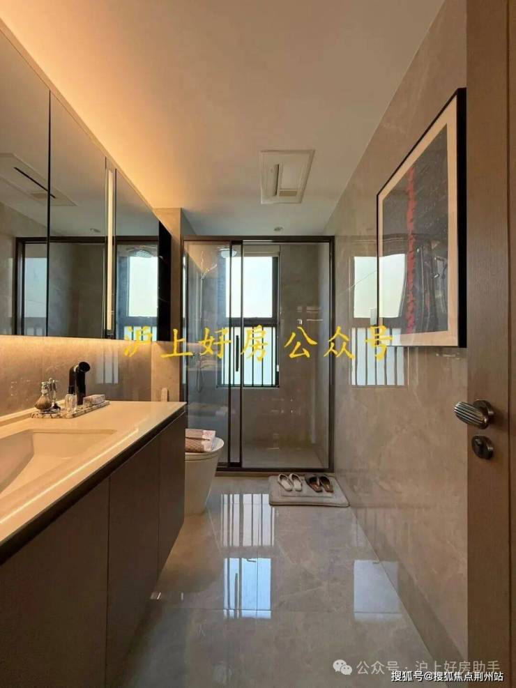所以虽然是约89㎡的紧凑型3房,但这个户型还是有空间做了一个1.5卫的设计,保证了主人的私密空间,也避免了早高峰用厕的尴尬。样板房实景照片如下: