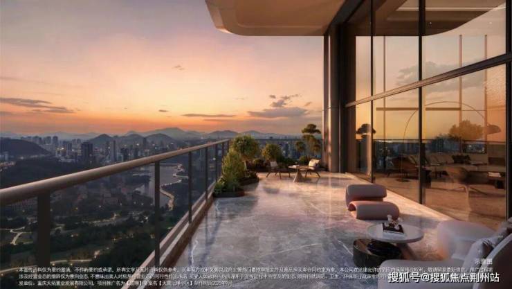 创新设计:采用环幕级全low-e玻璃幕墙,窗地比高达约60%,部分户型享有最高约6.4米的巨幅、转角、无水泥结构梁连接的全玻璃面设计,打破室内客餐厅与室外庭院的边界。