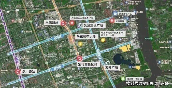 地块所在的紫竹区域占据浦江上游第一湾独特地理位置,核心区域有闵行第一大湖兰香湖,水域面积广阔,岸线绵延,湖光潋滟。