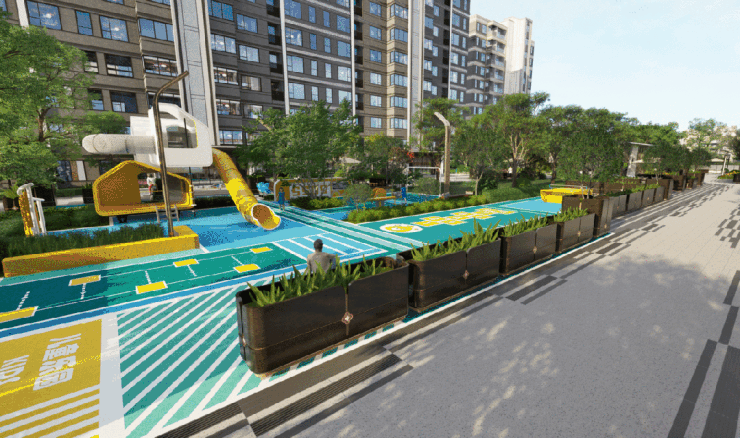 社区外,约2400㎡的滨水生活公园,业主的「私人后花园」,晨跑、散步、亲子嬉戏,下楼即享。
