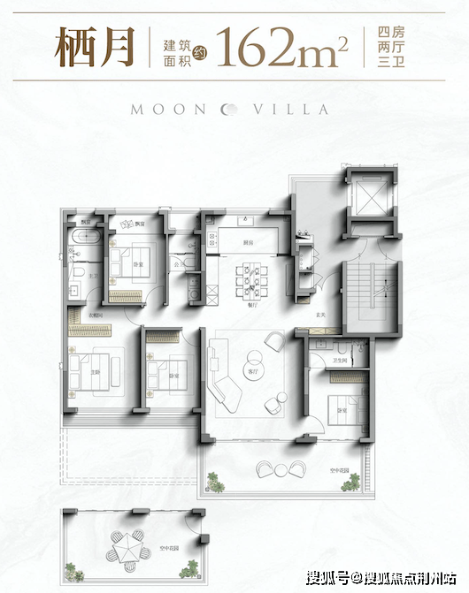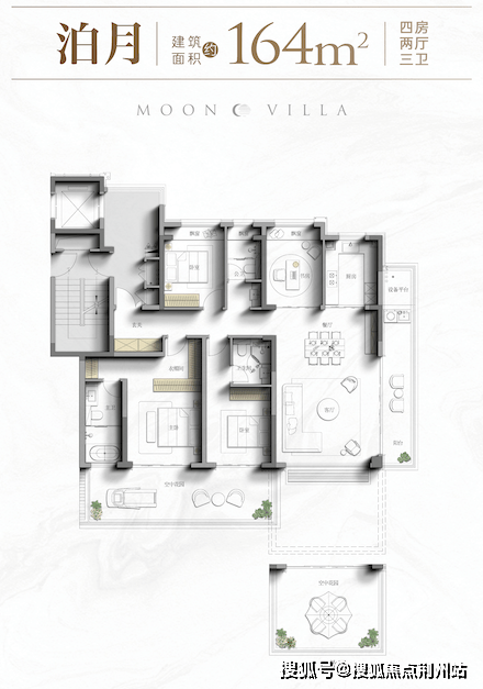 中铁咏月台依托全域抬板、低密业态、四代宅等优势,在空间设计上能做到超预期发挥,叠墅做出了独栋体验感,建面约132㎡洋房做出150㎡的体验,建面约162㎡/164㎡四代宅做出200㎡的气场!