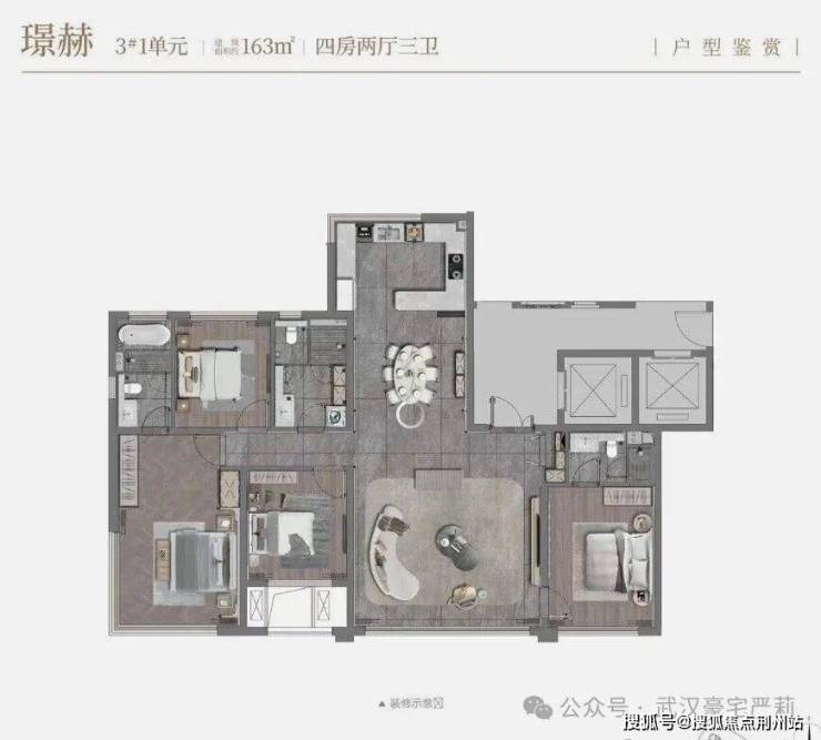 153㎡是“四叶草”格局,四个卧室全分开,互不干扰;