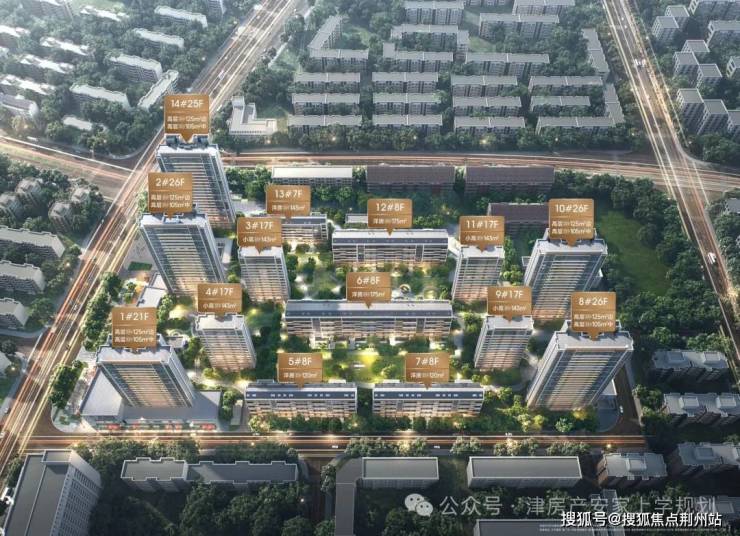 【楼栋规划】高层21-26层,两梯四户;小高层17层,两梯两户;洋房7-8层,一梯两户;
