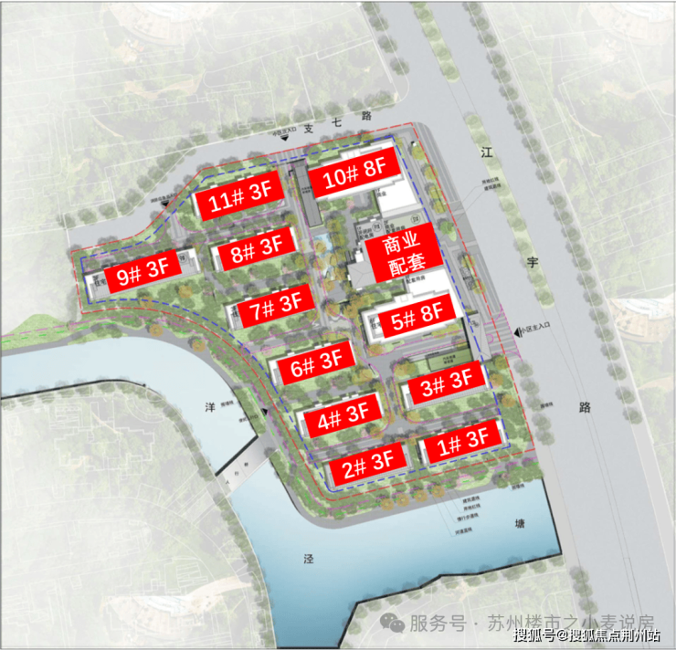 分布上,联排别墅沿河排开,洋房沿分布,圈层更加纯粹。小区东侧为主出入口,北侧为次出入口,出入口均设计了汽车坡道,是姑苏核心区罕见的地下停车位。