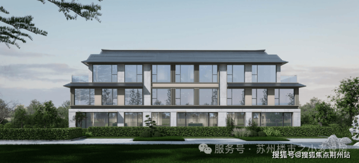 项目的外立面让人惊艳,大面积落地玻璃窗+深灰色屋檐+金属线条勾勒,既有现代感又不失姑苏古城古韵底色。