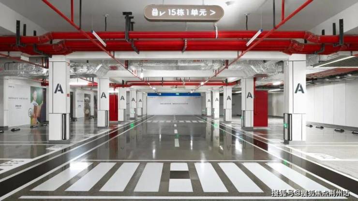 如果说社区大门是项目的“面子”,那这个车库绝对是它实打实的“里子”。当我走下去的瞬间,真的有被惊艳到——地面居然是类水磨石效果地面,质感细腻,一眼看上去小区的档次立刻提升了起来!
