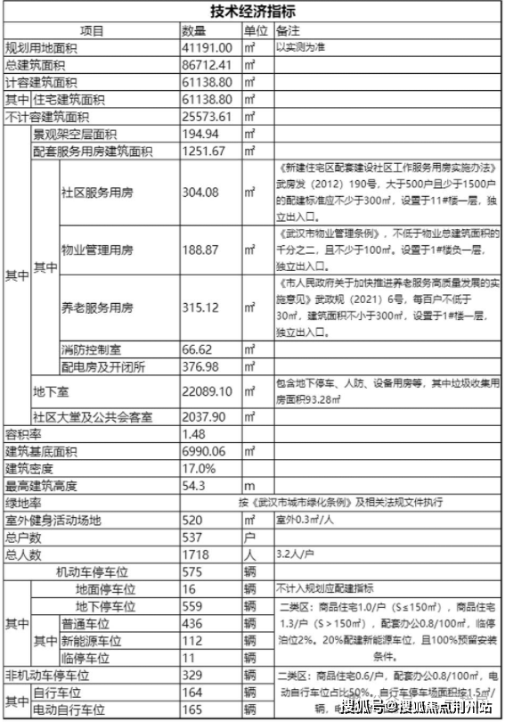 根据规划,项目规划用地面积41191㎡,住宅建筑面积61138.8㎡,总户数537户,机动停车位575个。