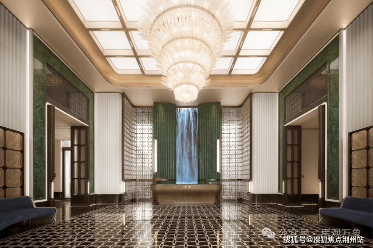 归家的仪式,由一座融汇礼序与艺术的门庭开启。福璟里以极简庄重之姿,构筑归心的第一重序章。门头承袭对称美学,以现代笔法转译海派风骨。一座以“海潮”为灵的叠水雕塑静立其中,水声层叠,与宁波“潮鸣三江”的往昔遥相呼应,仿佛一场历史与当下的温柔交响。