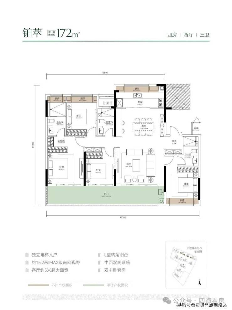 极致洋房:奢阔大四房,跑道级阳台、LDKG一体化超厅、超90%高得房率