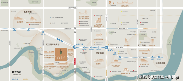 核芯区位 项目雄踞古田路与古调路交汇处,3公里范围内覆盖5大地铁站(古田一路/二路/三路、舵落口、汉西一路),直线距离1.5km即达武汉市第四医院(古田院区)。作为汉江湾重点发展区,周边13大公园环伺,1.1公里直达汉江湾全民健身中心(2025年底开放业主专享优惠)。