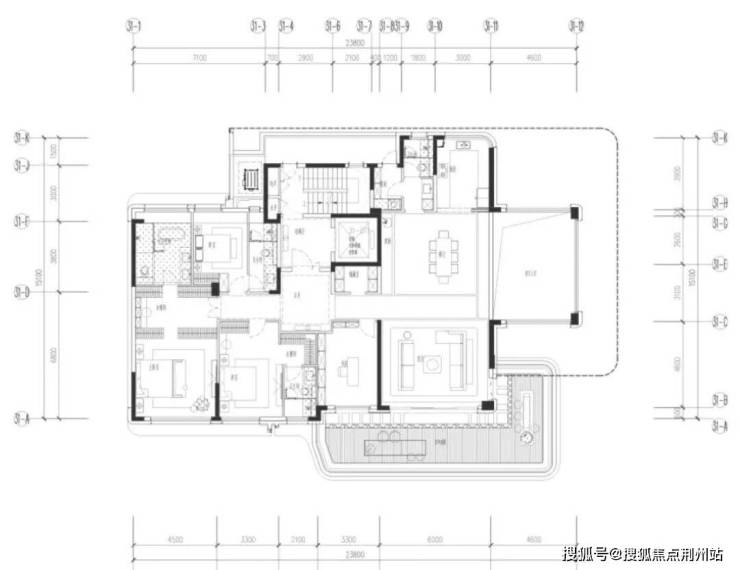 整体开间约23.8米,主卧开间4.5米