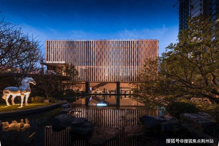 入门第二观:穿过大门,一匹白马栖湖而立,组成了一幅画卷——照夜白花园。《照夜白图》是唐代画家韩干创作的一幅纸本中国画,白马雕塑穿过山林,在水景旁驻足,展现着景观与自然的完美融合