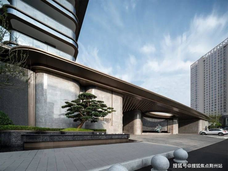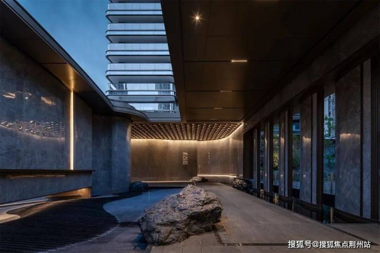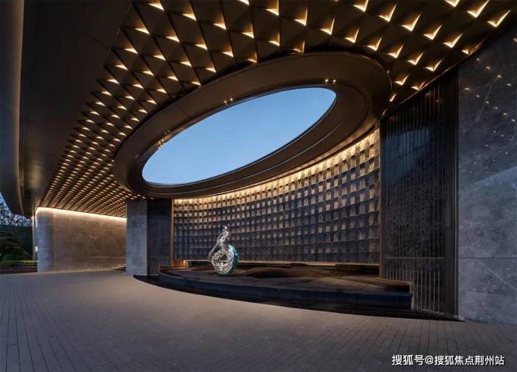 在门庭设计上,招商·武昌序以全球高奢酒店设计为灵感,打造约70米恢弘奢隐门庭,搭配流光溢彩的墙灯效果,联合周边商业裙楼形成约210米的城市界面。