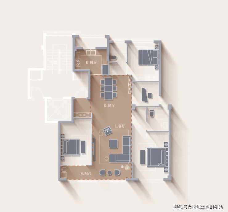 建面约155㎡户型,重新定义改善生活。全明独立电梯厅,随着阳光与风景入户,归家尽显尊崇;约14.4米南向巨幕面宽,非凡尺度,引光入室;LDKB超大复合公区与双联阔景阳台相连,打造出家庭社交、休闲、娱乐的超级主场。主卧更配置270°环景套房,成为主人专属的观景台,将生活的仪式感与舒适度推向极致。