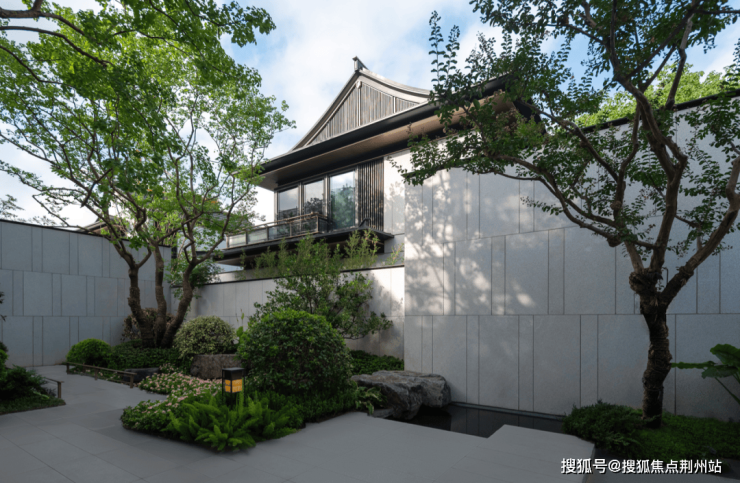 此前杭州中式多为飞檐翘角的明清风格,玺园·山前的宋韵更显清简与沉静。屋顶平缓开阔,金属檐顶深远出挑,远观如当代水墨,隐逸而有力。