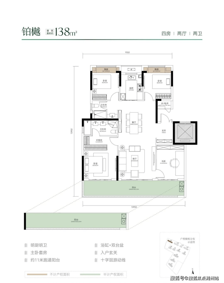 边户135㎡赠送面积达26.22平,整体得房率为91.32%,实际使用空间相当于过去的150平