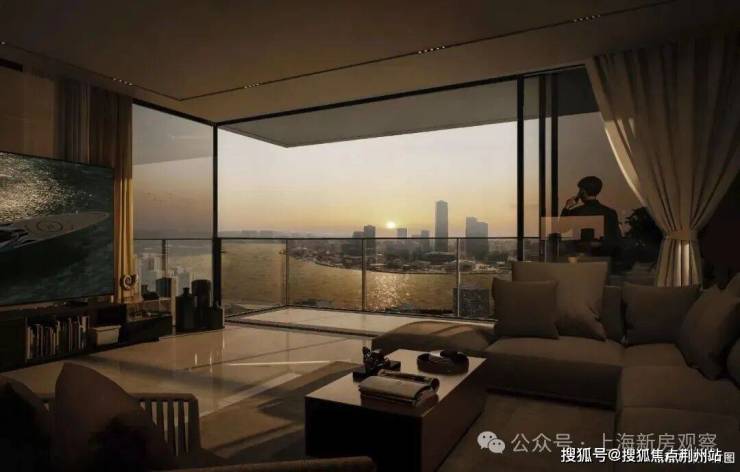 项目通过转角楼栋、大面积落地窗、隔音降噪技术,构建“全明江景视野”系统。