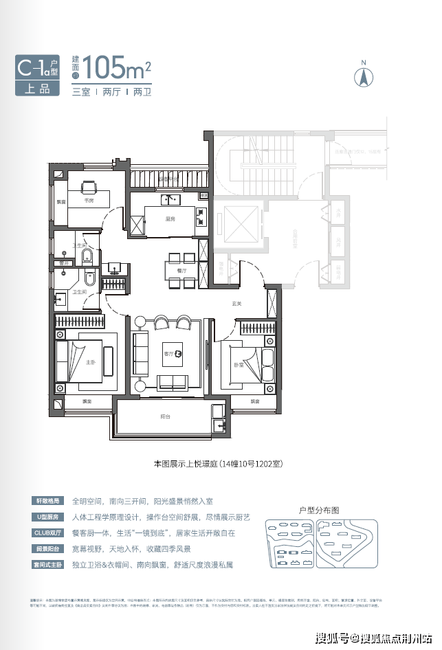 目前展示的建面约105平方米的三房两卫,堪称惊艳爆款!最牛X的户型设计,挑战空间的极限,实现大平层的体验。