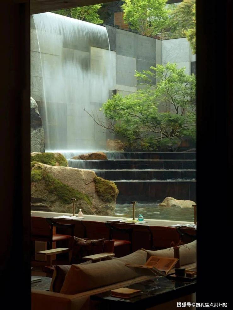 一条流动的水系串联了所有庭院的视窗,构成了在不同窗口外动态的风景,并由声音、水形态的变化,从溪到涧,聚潭成湖,汇聚到了核心庭院“莲湖”之中。