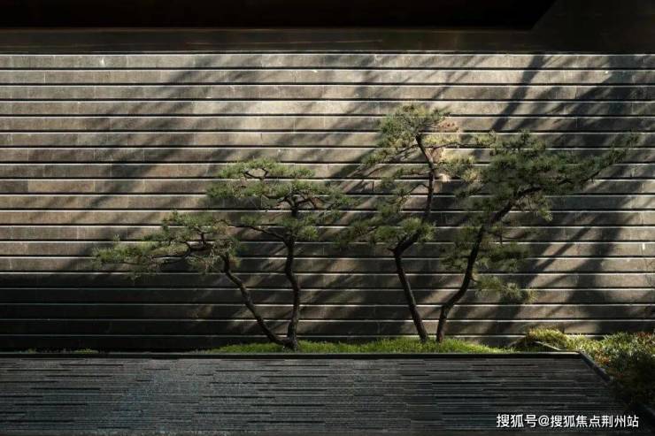 约200米宽的城市界面,不再以简单的一墙之隔划分内外,策略性退让出公共尺度,再植以山野绿意,将建筑掩去。外,是城市喧嚣;内,则借由景墙与层叠绿植实现入则隐逸的情绪转换。