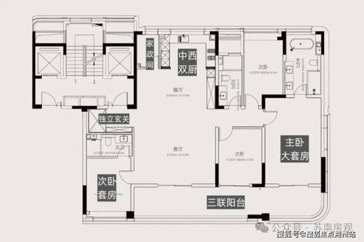 子母门+内玄关照壁设计,47㎡IMAX公区搭配6米宽厅,中西双厨实现"代际平权",36㎡主卧套间配4.2米曲面落地窗,三联超大阳台兼具观景与生活功能。