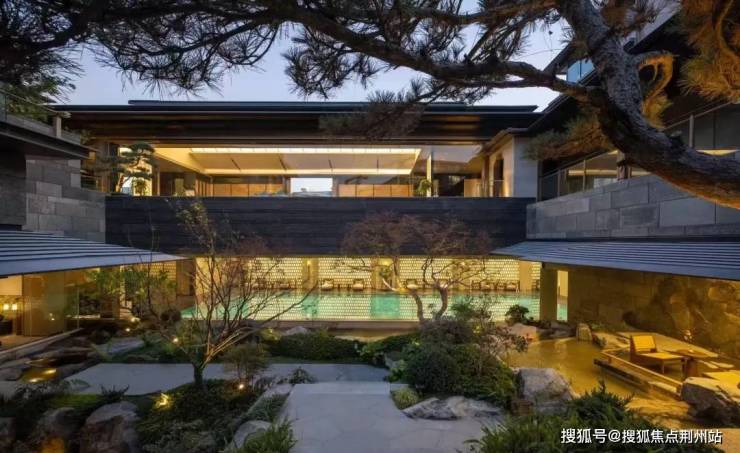 约500㎡下沉庭院「石湖山林」,借鉴名园造园手法,小园深藏大美,深得咫尺乾坤的造园精髓,与环绕四周的会所空间相互交融,以两大庭院为核心场景,展现江南园林致美,溪、亭、廊、桥、坡、台,形成理水叠山,坐泉望壑的江南园林景象。
