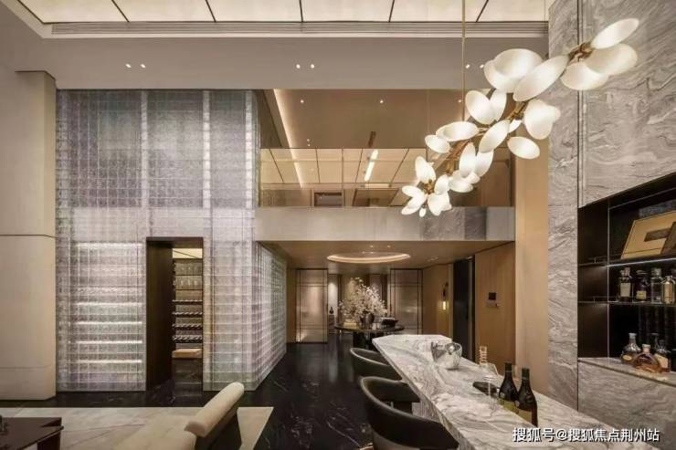 绿城·樾庐沿用经典三段式立面表现手法,构建优雅端庄的建筑美感。运用金色铝板搭配通透如珀的大面玻璃,擗帘杆、避风䈋、方格挂䈋等东方构件的装饰,建筑呈现低调内敛、如玉般温润雅意,演绎「金阙玉庐」的东方美学。
