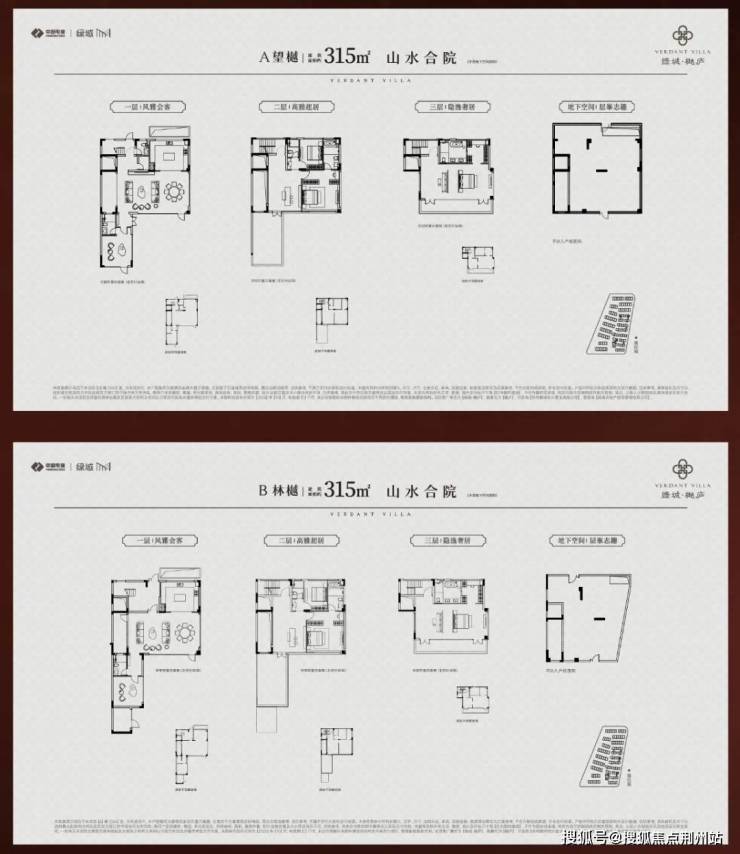 户型配置:建面约285-340㎡山水合院(2-3F),建面约200-300㎡诗境叠墅(4-6F)
