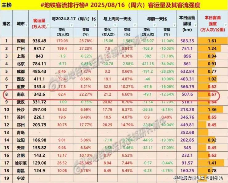 自开通之日起,5号线客流量连续突破40万人次,直接让南京地铁客流飙升 ,并在上周六反超武汉,位列全国第8位!