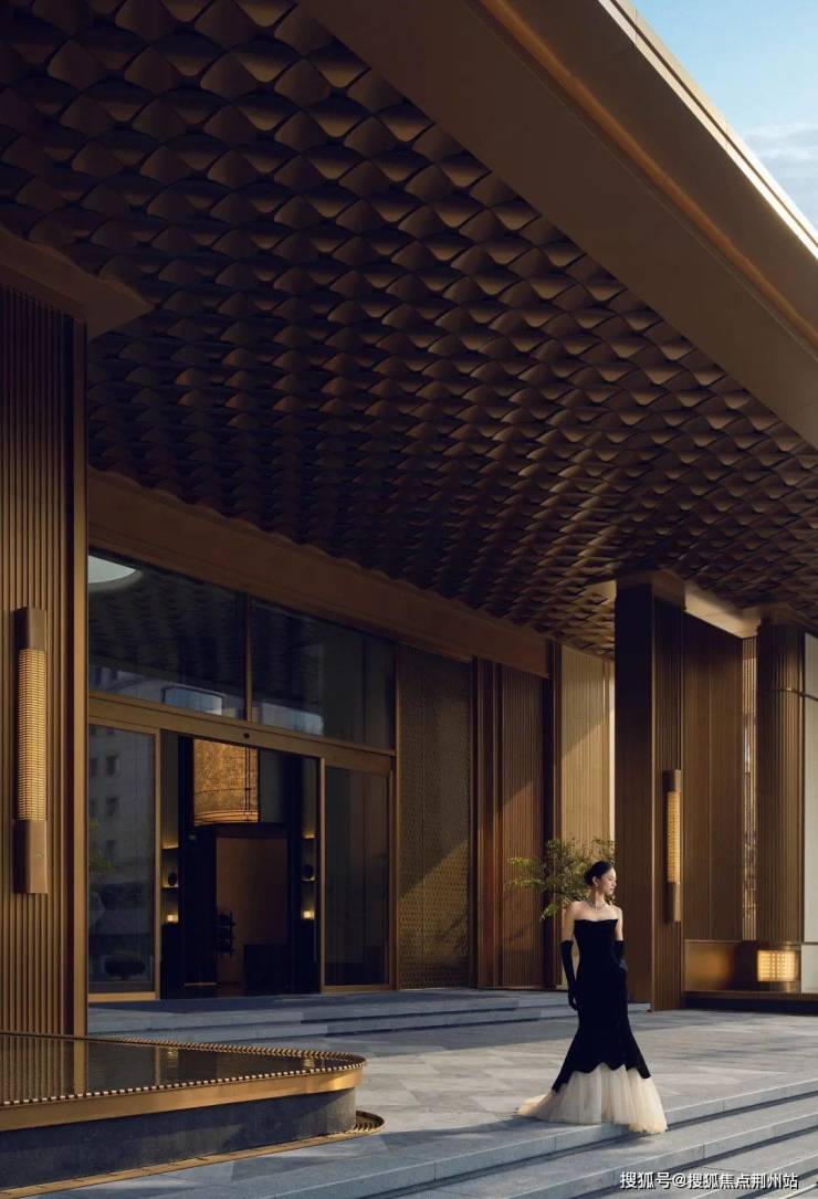 含景墙长约90米、高约8米的超前尺度,放在河西也是遥遥领先!门庭景墙选用沉香米黄大理石,并镌刻非遗金箔光影,再搭配两侧对植的造型罗汉松,气势恢宏!即便不用入内,光是这一扇门就是对业主身份的最好彰显了!