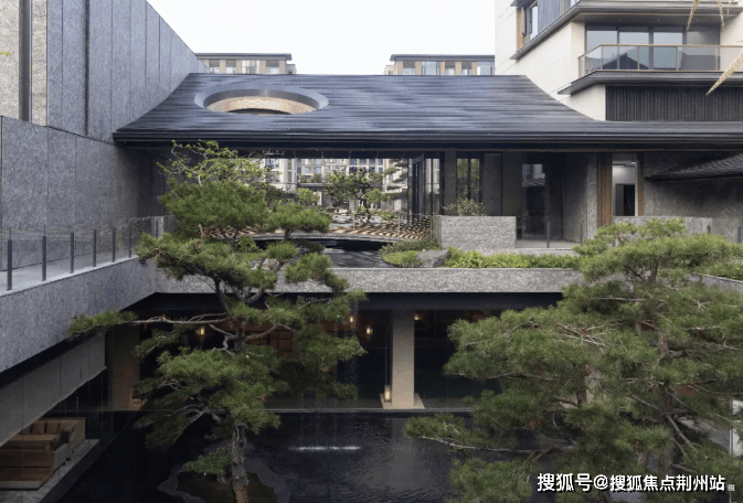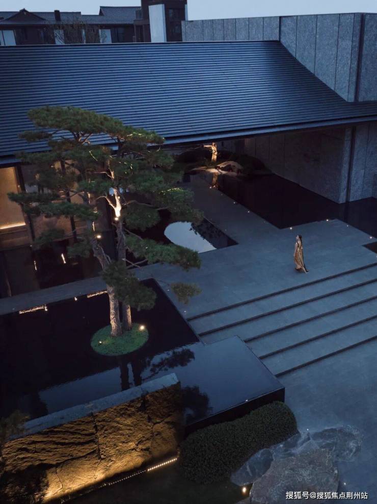 五株黑松以苍劲之姿构成「黑松叠景」,每一株都是跨越山河的生态艺术品,在古朴素简的山水画卷中,感受现代东方下的半隐秘境。