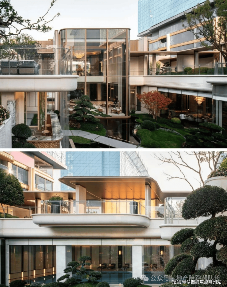 下沉庭院巧借约 6 米原生高差,打造出一方被自然环抱的沉浸式私家花园。萃取艺术家的光影巧思,让空间层次错落、光影流动成趣;约 11 米震撼挑高搭配整幅定制大尺寸玻璃,大幅提升地下空间采光,阳光肆意倾泻,实现室内外景致无界交融。园区复刻滨江经典热带园林,遍植高耸热带珍树;下沉庭院灵动水景与中央异形景观水池相映成趣,池畔特设吧台与亲水卡座,闲坐小憩间,宛若置身东南亚高端度假酒店,氛围感拉满。