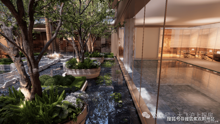 约350米林荫漫步道溯源武康路、湖南路海派林荫肌理,甄选树种与海派艺塑相映成趣。五幕庄园礼序汲取孙科别墅、阿尔罕布拉宫等经典园林精髓,打造五幕庄园归家动线,营造层层递进的静谧氛围。