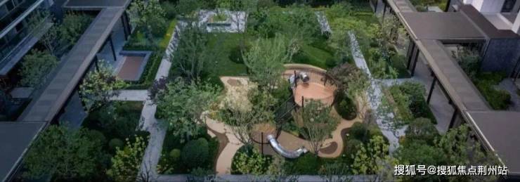 “亲子自然客厅”——致力于培养下一代,倡导多元化的社区学习氛围,通过架空层满足各年龄段儿童成长和娱乐需求,让他们从小接触并热爱自然。以“绿野仙踪”为主题的儿童游乐场,采用大地色系的铺装材料,配备模拟真实树屋的游乐设施,为孩子们提供更接近自然的游乐体验。环形步道串联起的平台,还为业主提供了宅前休闲、亲子手作等活动空间。