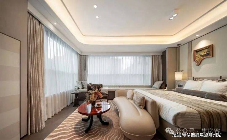 同时, 不仅餐客厅有着约7米的落地门窗,书房与主卧还都坐拥270°采光面 ,任由晨光与暮色在家中流转,也撑起了豪门大宅的自信气场。