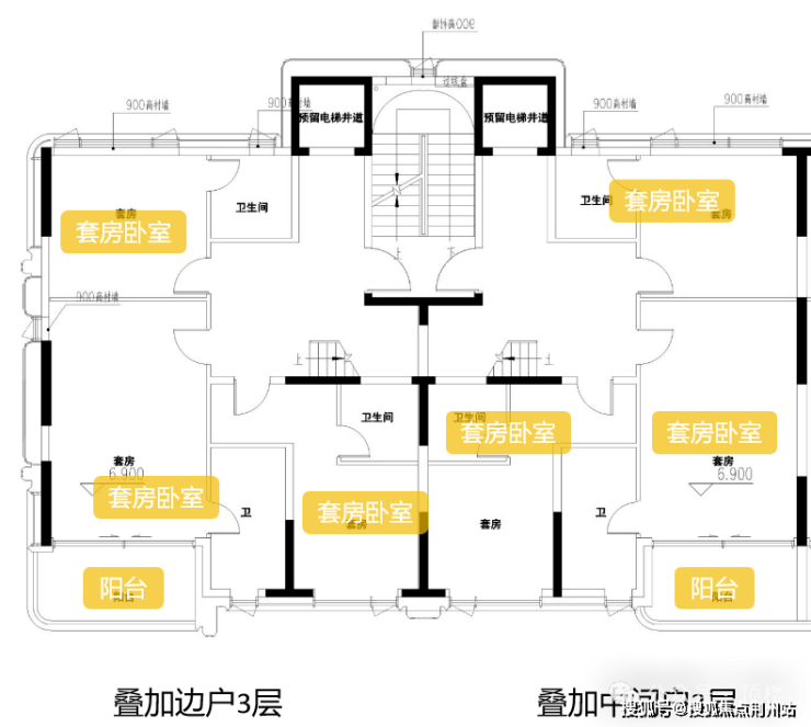再来看这个叠加户型3层,也打造了全套房的休憩空间,面积应该也很适中,很适合改善客户。
