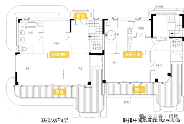 地上3层设计,根据公布的户型图,联排都打造全套房设计;并且每层都有阳台与露台与户外连接。