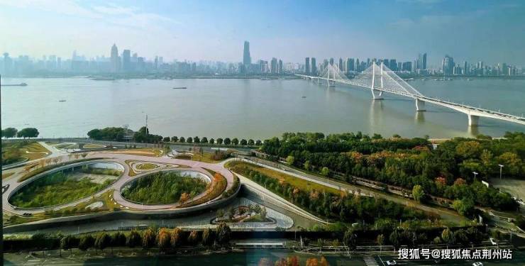 城市窗口一线瞰江:三面瞰长江,一面瞰湖,紧邻月亮湾城市阳台、粤汉铁路遗址公园、四美塘文化公园、武昌江滩公园。