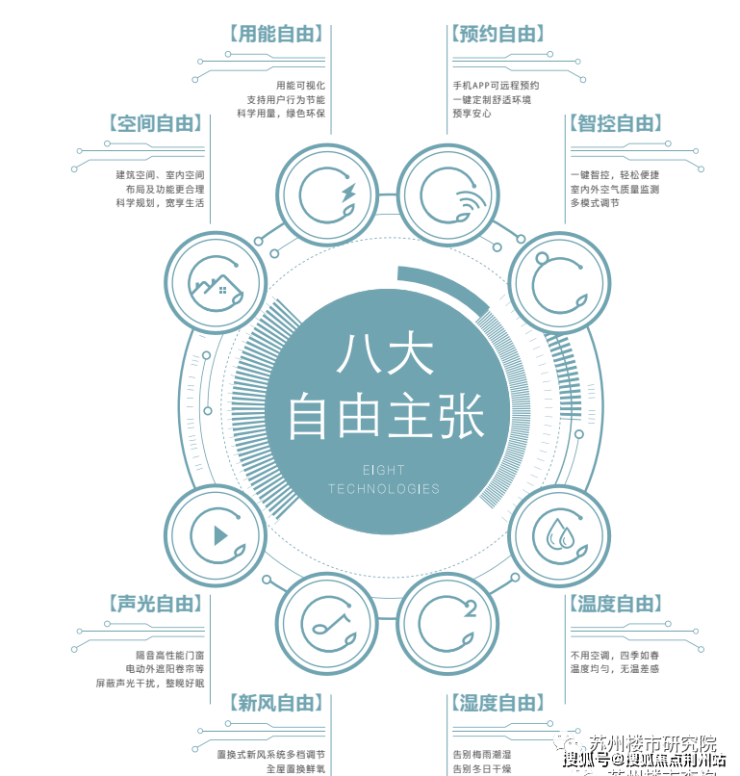 八境:中央艺术会客厅、全龄儿童主题乐园、森氧林下空间、悦动康体空间、动力休闲区、安逸邻里交流区、悦享洽谈区、乐活社交区