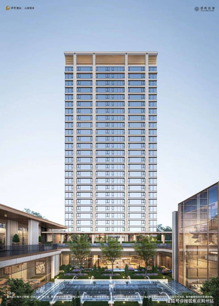 高大上的外观能够带来情绪价值,也可以影响后期流通价值。保利琅誉采用三段式的外立面,鎏金塔冠造型的屋顶,楼体是大面积的玻璃幕墙搭配金属铝板和真石漆,南向窗墙比达到约70%,看起来大气的同时也极大的增强室内的采光效果。