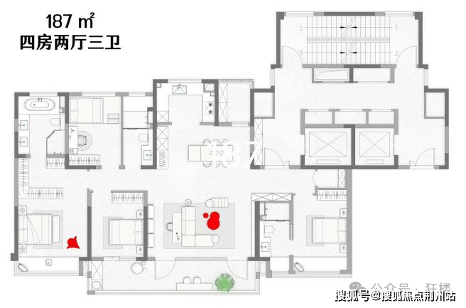 再比如这款建面约187㎡的户型——